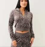 Sexy Exposed Navel Leopard Print Hoodie - Gray