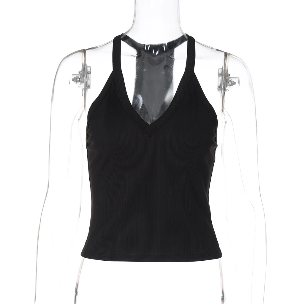 V-neck Sexy Exercise Small Vest Top T-shirt - Black
