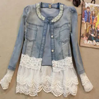 Niche Short Washed Beaded Coat Top - Royal Blue
