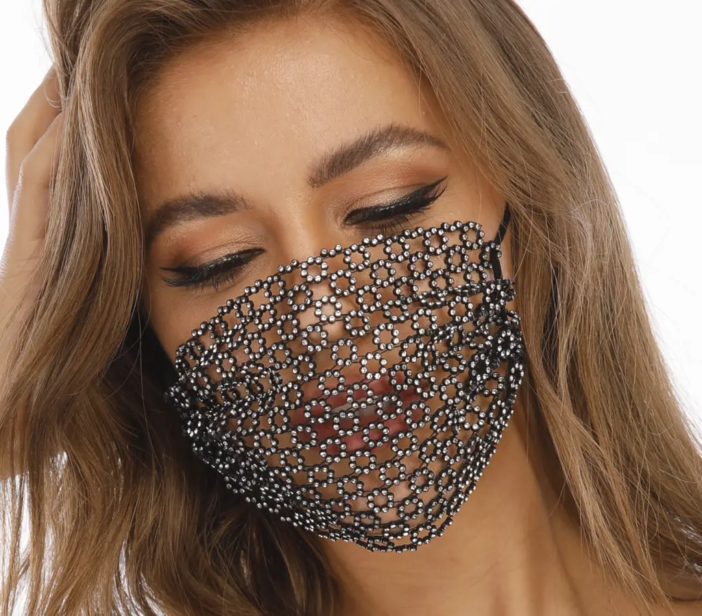 Novelty Fishnet-shaped Star Rhinestone Face Mask - Little Flowers