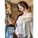 Off-shoulder Bowknot Off-shoulder Upper Clothes Long Sleeves T-shirt
