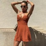 Off-shoulder Sleeveless One-piece Shorts - Ls3753 Brown
