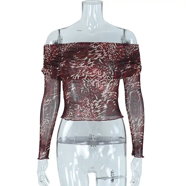 Off The Neck Digital Printing Screen Yarn Perspective Temperament
