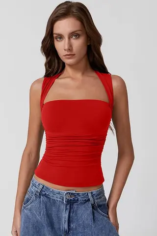 Off-the-shoulder Square Collar Shoulder Strap Midriff-baring Top - Red