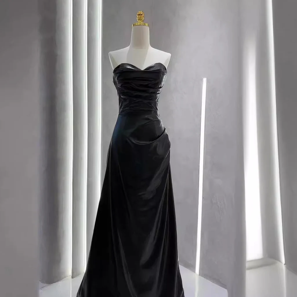 Off-the-shoulder Tube Top Leather Skirt Evening Gown - Black