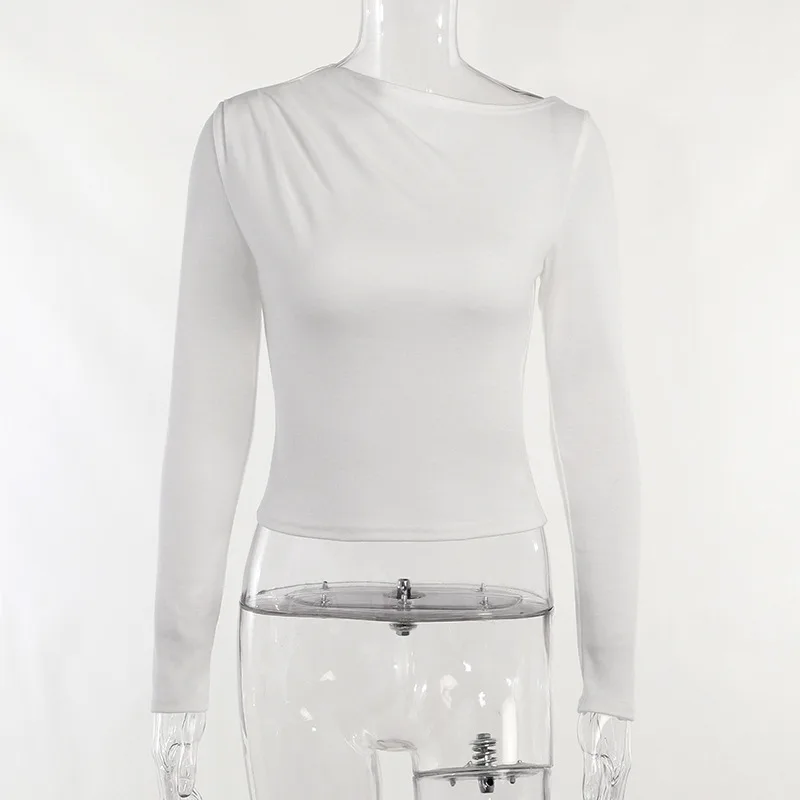 One-shoulder Pleated Base Base Long Sleeve Autumn