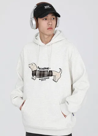 Original Sausage Dog Patch Pullover Hoodie - Flower Gray