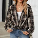 Oversize Bf Style Plaid Brushed Long Sleeve Shirt