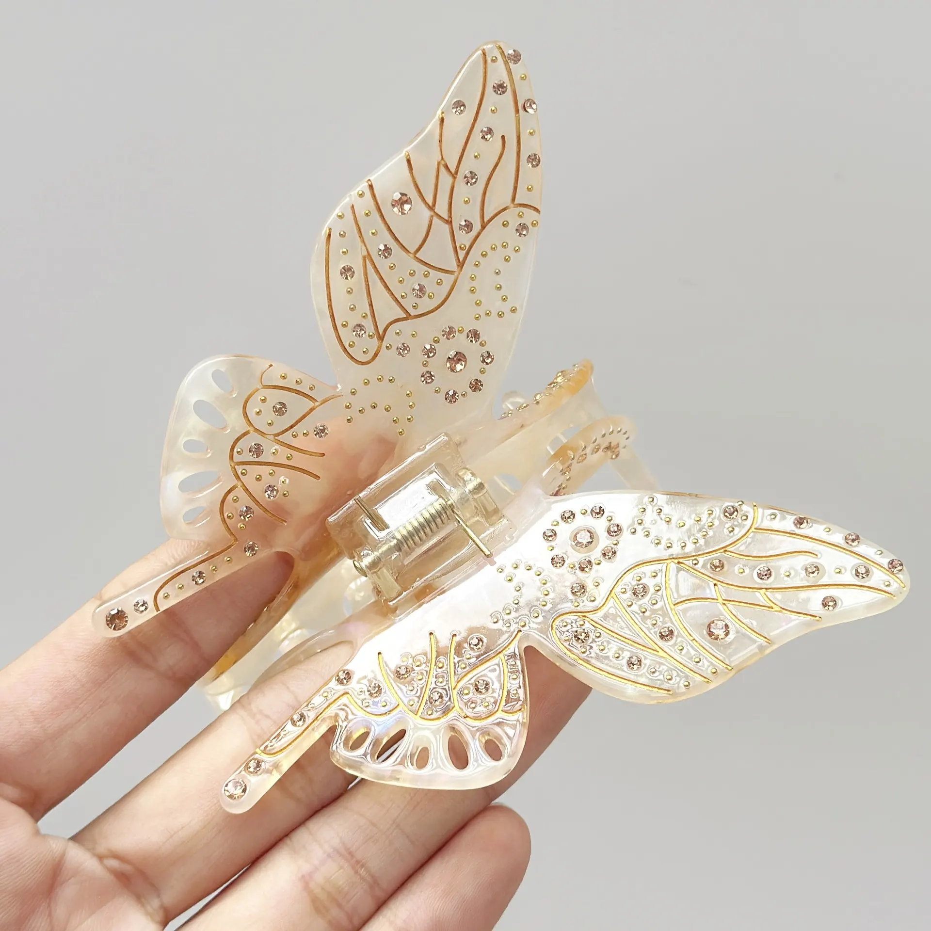 Oversized Light Luxury Glass Butterfly Hair Claw