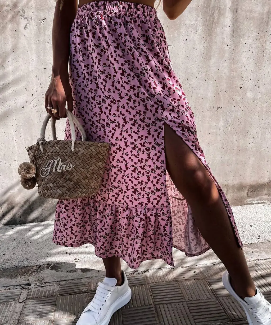 Patchwork Versatile Ruffled Elastic Waist Floral