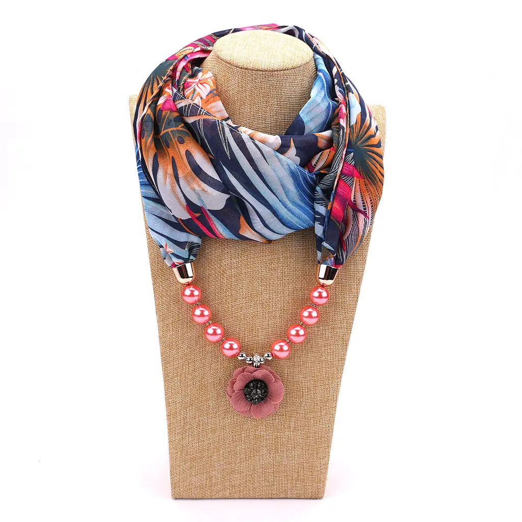 Pearl Chiffon Jewelry Necklace Scarf - 2style