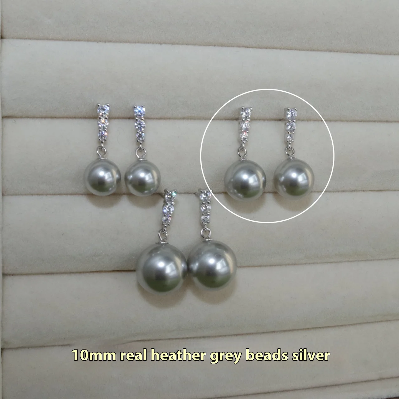 Pearl S925 Silver Stud Earrings For - 10mm Gray Gang Drill Silver