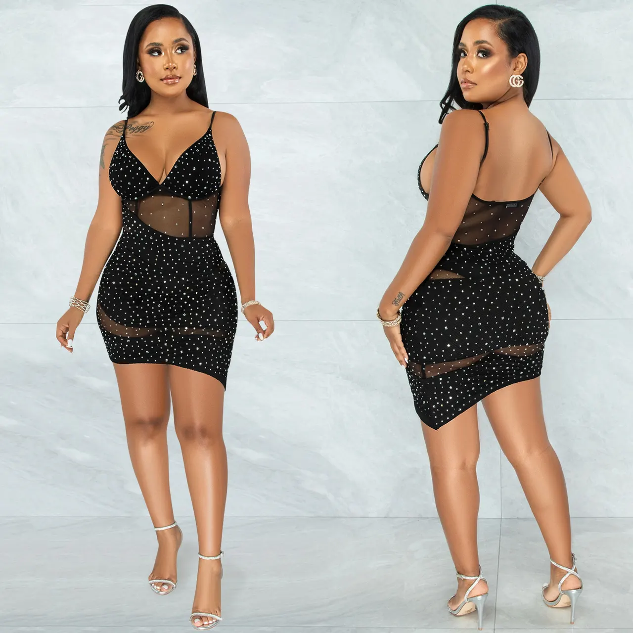 Product information: Fabric name: mesh Style: sexy Pattern: plain Style: sling Combination form: single piece Skirt length: short skirt Skirt type: Irregular skirt Waist type: mid waist Clothing placket: hedging Popular elements: irregular, diamond-studded, perspective, backless, stitching, gauze Main fabric composition: polyester fiber (polyester) Main fabric ingredient content: 81%-90% Main fabric composition 2: Spandex The content of main fabric ingredient 2: 10% or less Lining composition: polyester fiber (polyester) Lining ingredient content: 81%-90% Color: X5575-Black, X5575-Apricot, X5575-White Size Information: Size: S, M, L, XL, XXL Note 1. Asian sizes are 1 to 2 sizes smaller than European and American people. Choose the larger size if your size between two sizes. differences due to . 2. Please check the size chart carefully before you buy the item, if you don't know how to choose size, please contact our customer service. 3.As you know, the different computers display colors differently, the color of the actual item may vary slightly from the following images. Packing list: Dress*1