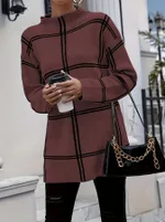 Plaid All-match Round Neck Pullover Sweater - Dark Brown