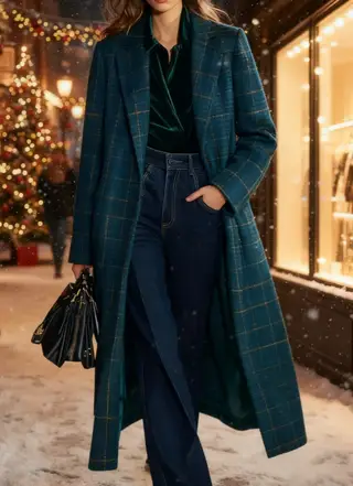 Plaid Long Wool Coat - 4style
