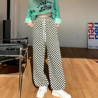 Product information: Fabric name: Polyester Color: pink plaid, black plaid Waist type: high waist Size: S,M,L,XL,XXL,XXL,XXXXL Applicable Gender: Female Style type: Japanese and Korean casual Pants type: Wide Leg Packing list: Pants * 1 Product Image: