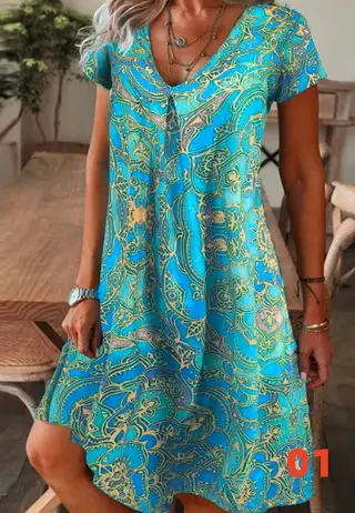 Product information: Pattern: Printing Fabric name: Flat mop cloth Color: 01,02,03,04,05,06,07,08,09,10 Sleeve type: regular sleeve Main fabric composition: Polyester Fiber (polyester) Size: S,M,L,XL,2XL,3XL,4XL,5XL Sleeve length: short sleeve Style: pullover Note: 1. Asian sizes are 1 to 2 sizes smaller than European and American people. Choose the larger size if your size between two sizes. differences due to . 2. Please check the size chart carefully before you buy the item, if you don't know how to choose size, please contact our customer service. 3.As you know, the different computers display colors differently, the color of the actual item may vary slightly from the following images. Packing list: Dress*1 Product Image: