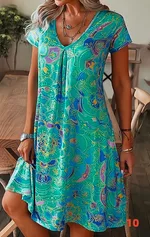 Printed Floral Pattern Round Neck Short Sleeve Dress - 10 Style