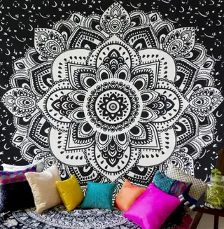 Printed Home Tapestry Black And White With Wall