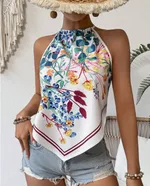 Printed Notched Neck Sleeveless Tank Top - Style5