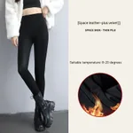 Pu Fleece-lined High Waist Slimming Windproof Waterproof Leggings -