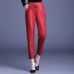 Pu Leather High Waist Harem Pants With Small Feet Elastic - Red