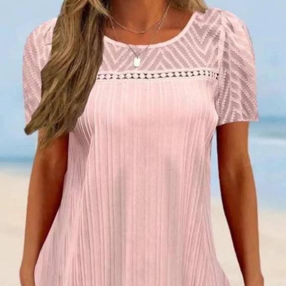 Pullover Round Neck Lace Patchwork Short-sleeved T-shirt