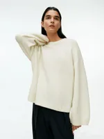 Pullover Loose Thick Cashmere Round Neck Sweater - Milky White