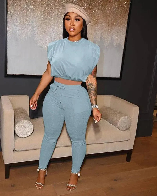 Pure Color Tight Sleeveless Padded Shoulder T-shirt String