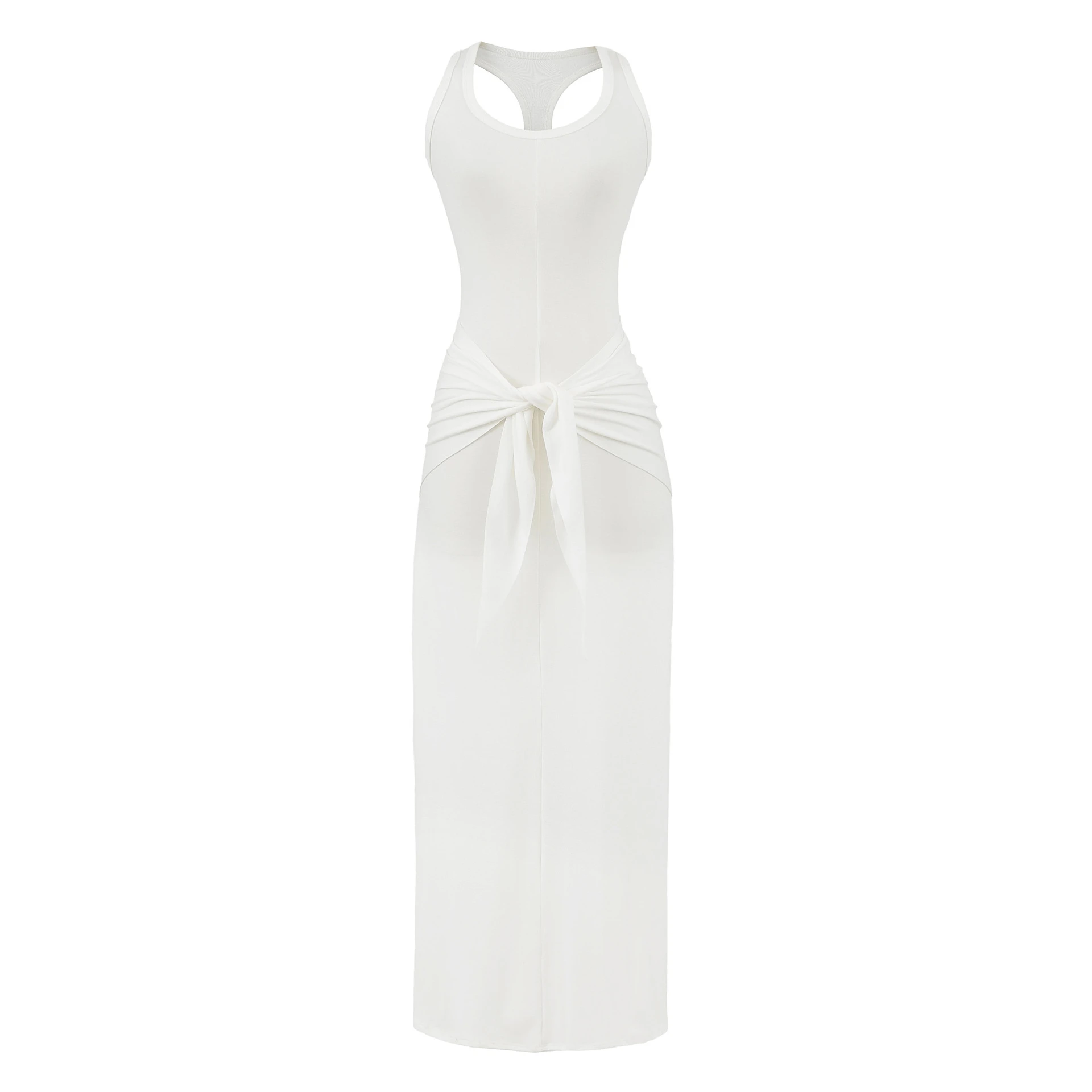 Pure Desire Sexy Wear V-neck Slim-fit I-shape Vest Dress - White