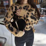 Refined And Versatile Warm Thick Leopard Print Pullover Sweater -