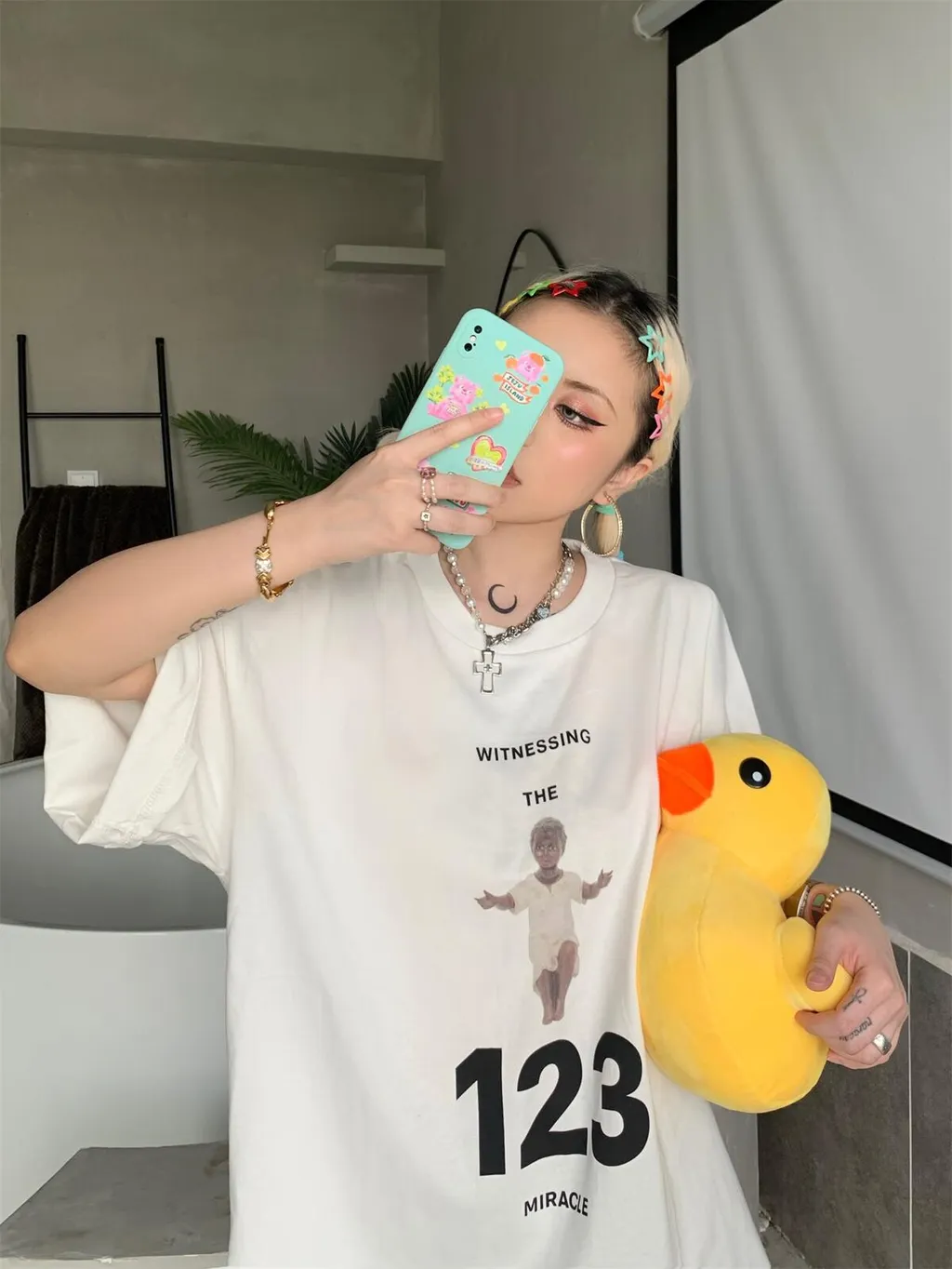 Product information: Material: Cotton Flower pattern: figure pattern Cotton content: more than 95% Sleeve: Dropped shoulder sleeves Subdivision style: trendy Color: White Edition type: Loose Style Details: Print Printing theme: character pattern Size: S M L XL Size Information: Unit: cm Prevention: 1. Asian sizes are 1 to 2 sizes smaller than European and American people. Choose the larger size if your size between two sizes. differences due to . 2. Please check the size chart carefully before you buy the item, if you don't know how to choose size, please contact our customer service. 3.As you know, the different computers display colors differently, the color of the actual item may vary slightly from the following images. Packing list: Polyester Ladies Short Sleeve x1