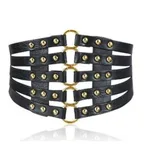 Product information: Product Category: Waist Seal Applicable gender: Female Applicable age: Adult Material: Imitation leather Popular elements: Hollow Color: red, blue, brown, black gold, black silver, light brown style: Casual Belt loops: Single loop Suitable season: Spring, autumn, winter, summer Retro hollow orange ultra-wide girdle all-match skirt down jacket decoration