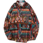 Retro Pattern Ethnic Style Long-sleeved Floral Shirt - Coffee