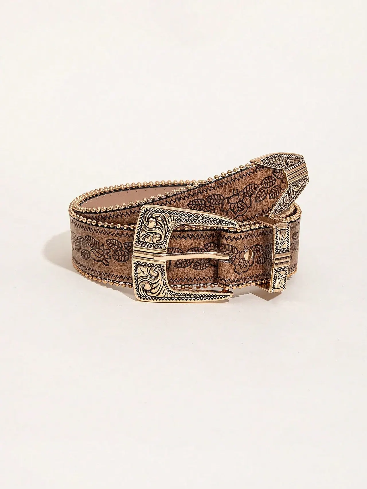 Retro Pattern Pu Belt Western Style Belt - Brown I