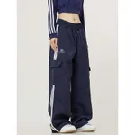 Retro Side Striped Overalls Straight Pants - Navy