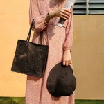 Retro Single Shoulder Tote Bag Korea Embroidered Hollow Shopping Bag