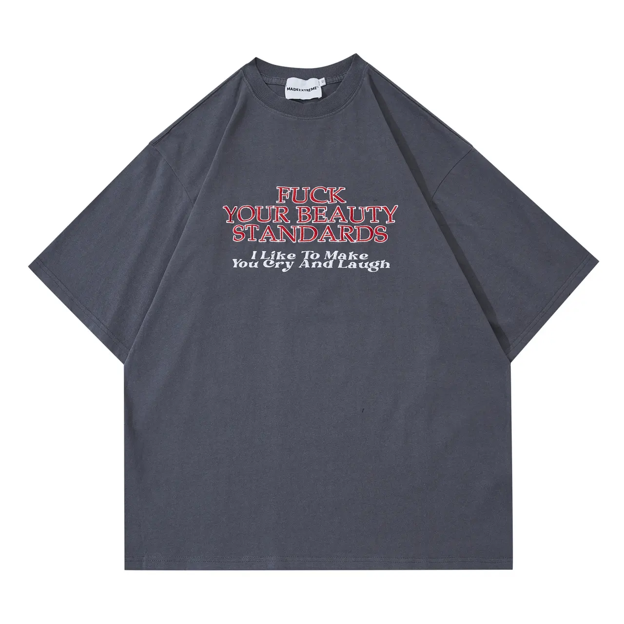 Retro Alphabet Embroidered Short Sleeves - Grey