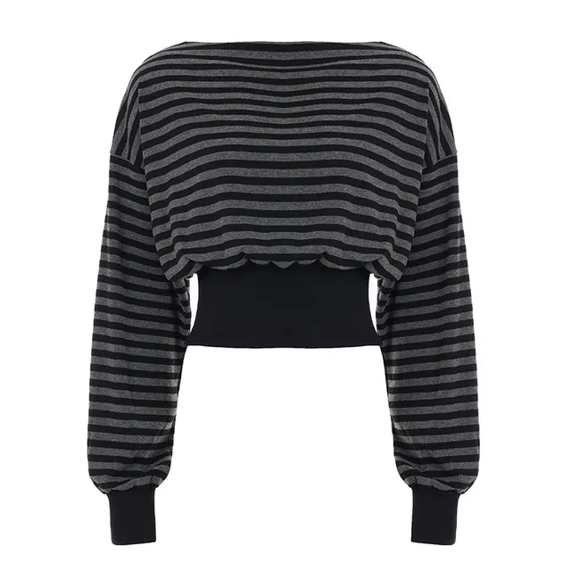 Retro Striped Cropped Top With A Cinched Waist Designslimming And