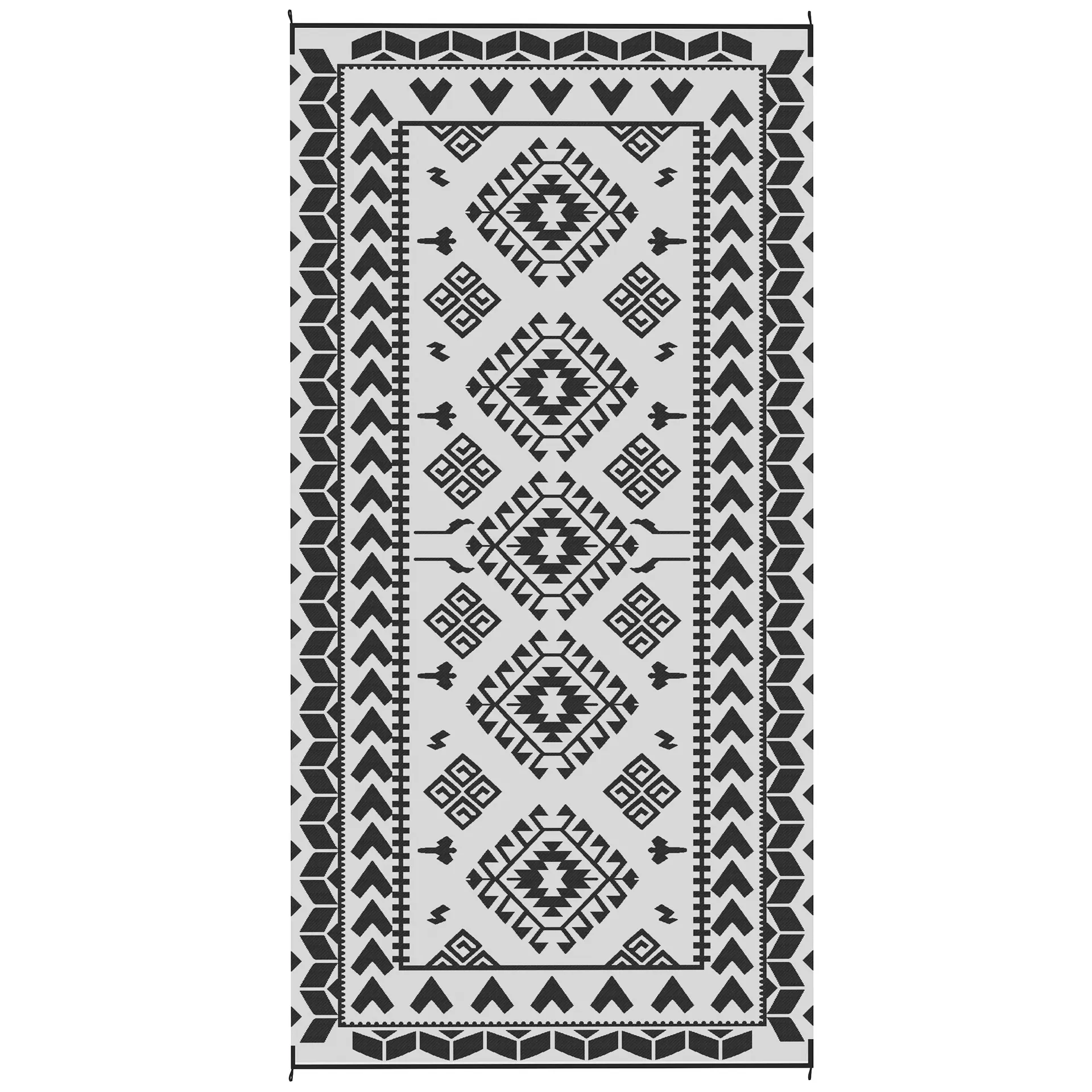 Features: - Reversible with double sides for varied use - Made of polypropylene, with a protective coating to help prevent fading and sun damage - Features robust edging to prevent fraying - Space-saving foldable design for easy storage and transport - Carry bag included - Versatile for camping, picnics, RV road tours, and more Specification: - Color: Black and White - Style: Rhombus Patchwork - Materials: 310g/m² Polypropylene, Non-Woven Fabric - Dimensions: 215.7" L x 107.9" W - Carry Bag Dimensions: 36.6" L x 13.4" W x 7.5" H - Note: Not fireproof, keep away from fire Package Includes: - 1 x Outdoor Rug - 1 x Carry Bag