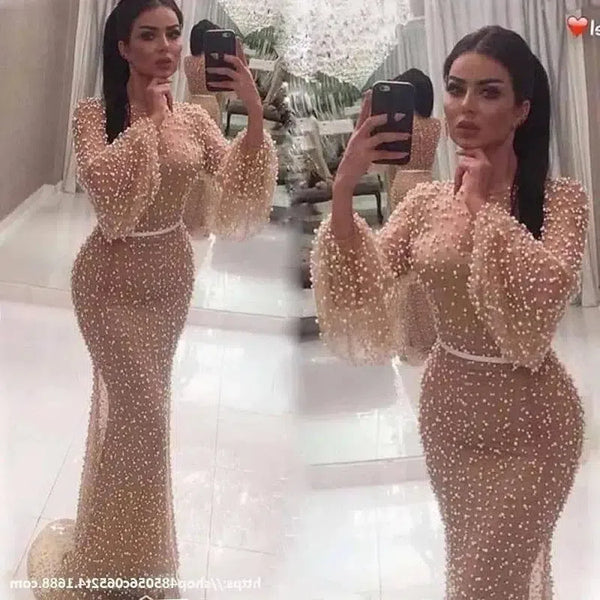 Robe , Fine Longue De Tulle Transparente Manches Longues