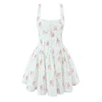 Rose Printed Lace Stitching Cotton Mini Dress -