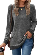 Round Neck Multicolor Pocket Long Sleeve Pullover Top Loose-fitting