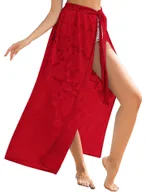 Sarong Transparent Floral Swimsuit Overskirt - Red