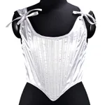 Satin Tunic Sexy Strap Cropped Fishbone Corset - White