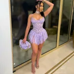 Sexy Bandeau Strap Backless Hollow Dress - Purple
