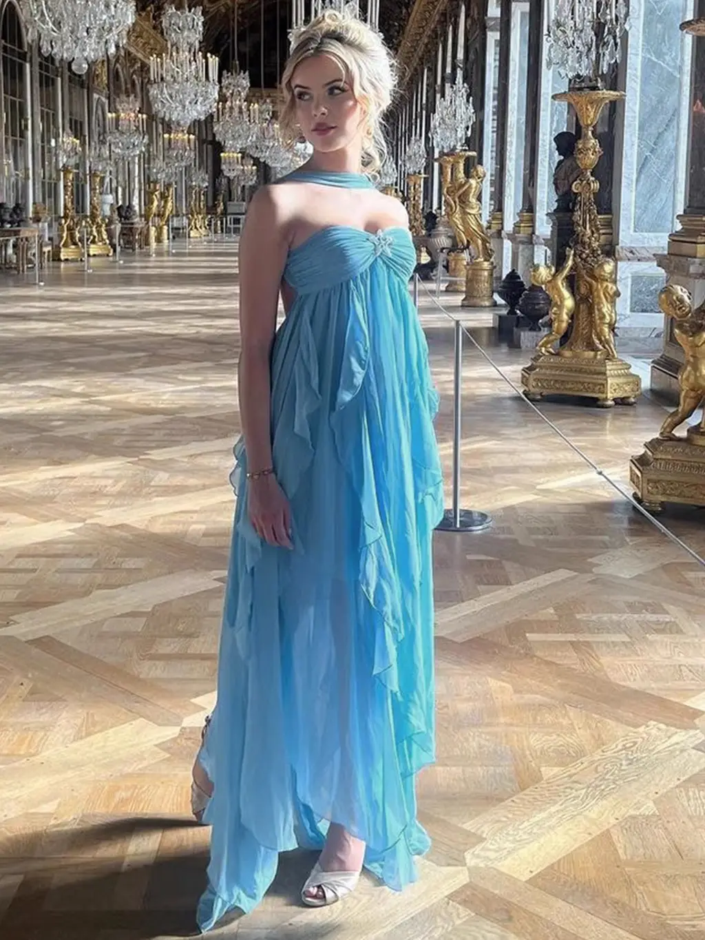 Sexy Halter Backless Tube Top Laminated Lace Dress - Blue