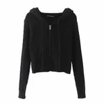 Short Spring And Autumn Hooded Twist Knitted Cardigan Coat For - Black