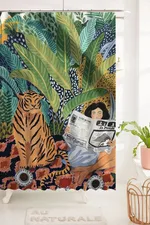Product Information: Material: Polyester High sag feeling, no sticking to the body, thickening and impervious protection High-definition printing, thick fabric, waterproof and quick-drying, environmentally friendly material Electroplated copper buckle is not afraid of rust Packing List: Curtain*1