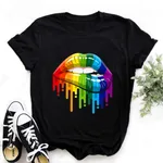 Shut Up Gesture Lips Short Sleeve T-shirt No Letters - Blackb